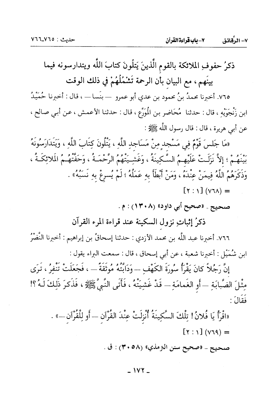 ذِكْرُ إِثْبَاتِ نُزُولِ السَّكِينَةِ عِنْدَ قِرَاءَةِ الْمَرْءِ القرآن