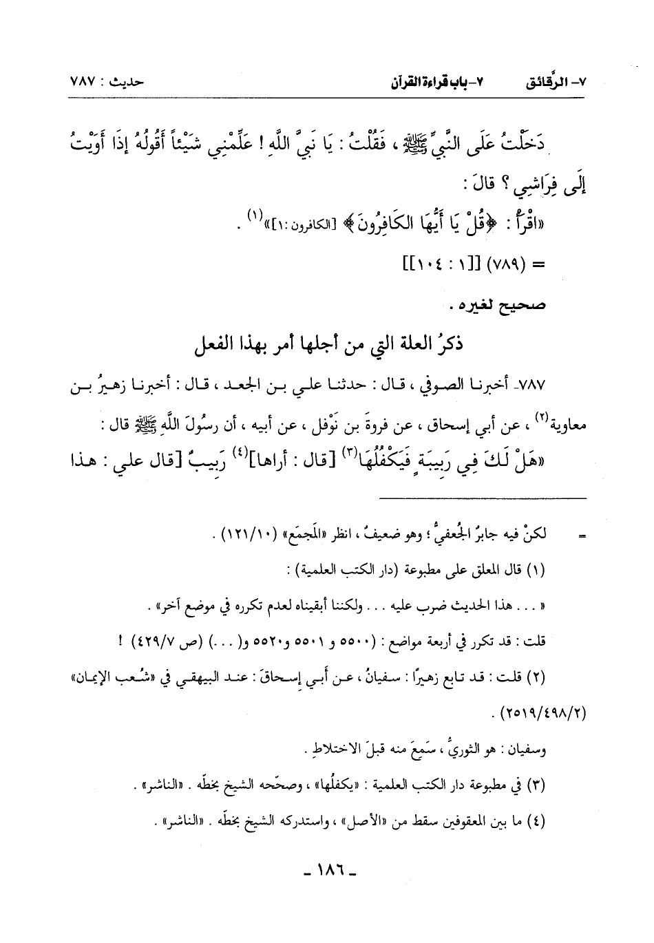 (¬1) قلت قد تابع زهيراً: سفيان عن أبي إسحاق عند البيهقي في ((شعب الايمان)) (2/ 498/2519)