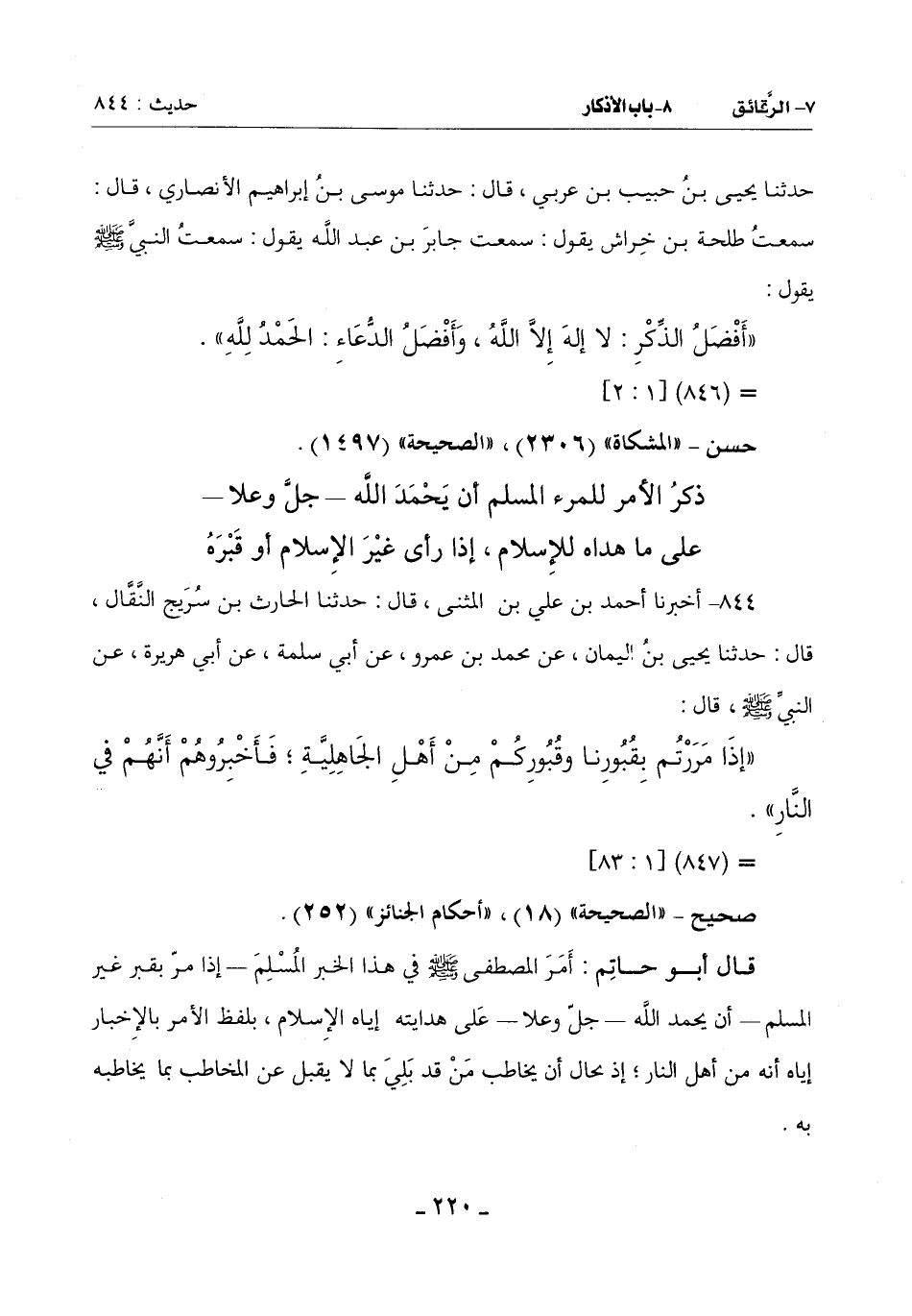 ذِكْرُ الْأَمْرِ لِلْمَرْءِ الْمُسْلِمِ أَنْ يَحْمَدَ اللَّهَ جَلَّ وَعَلَا عَلَى مَا هَدَاهُ لِلْإِسْلَامِ إِذَا رَأَى غَيْرَ الْإِسْلَامِ أَوْ قَبْرَهُ