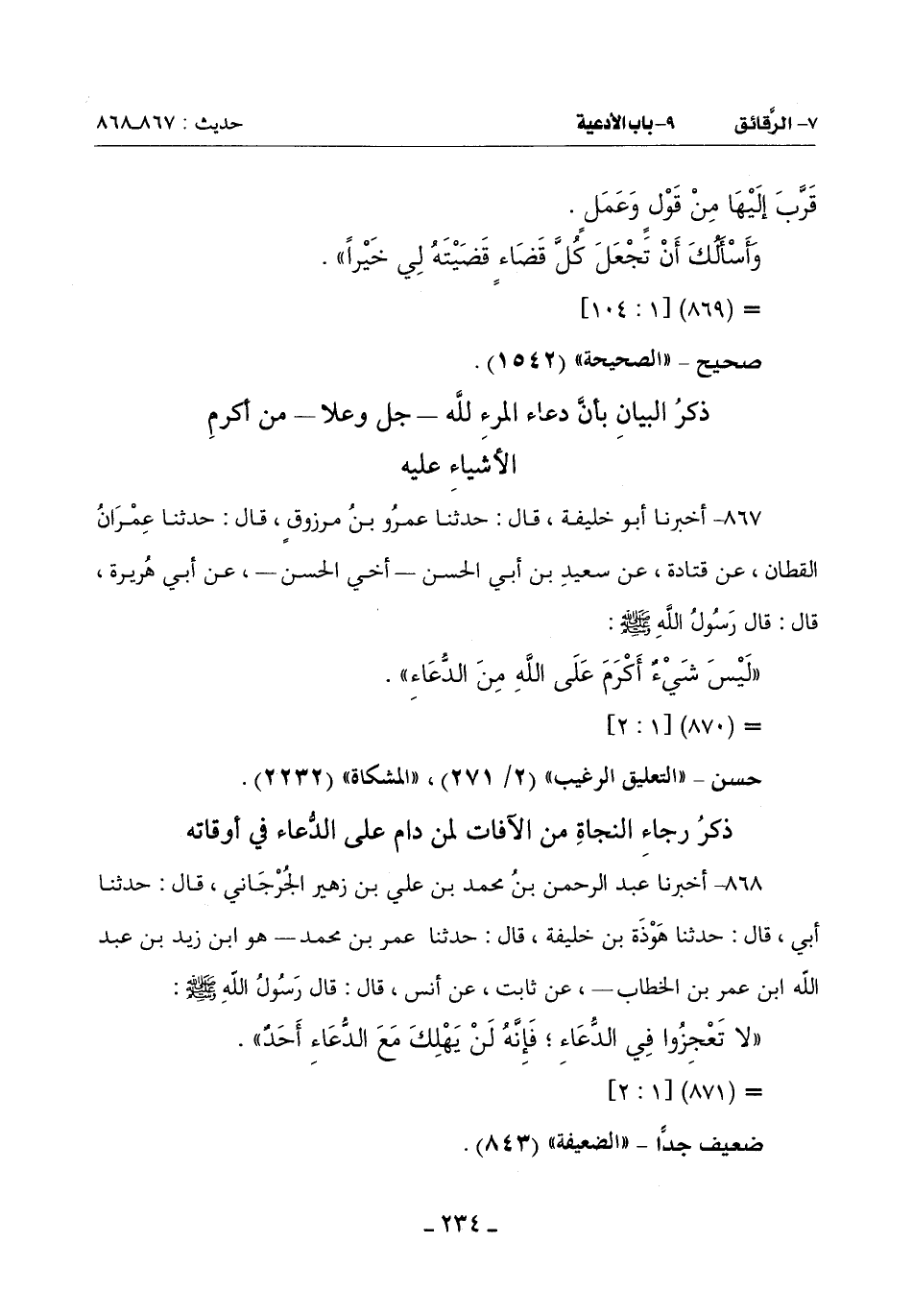 ذِكْرُ الْبَيَانِ بِأَنَّ دُعَاءَ الْمَرْءِ لِلَّهِ جَلَّ وَعَلَا مِنْ أَكْرَمِ الْأَشْيَاءِ عَلَيْهِ
