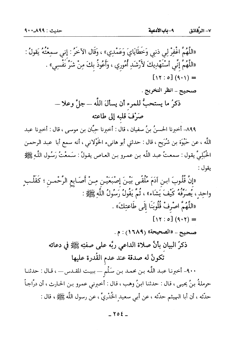 ذِكْرُ مَا يُسْتَحَبُّ لِلْمَرْءِ أَنْ يَسْأَلَ اللَّهَ جَلَّ وَعَلَا صَرْفَ قَلْبِهِ إِلَى طَاعَتِهِ