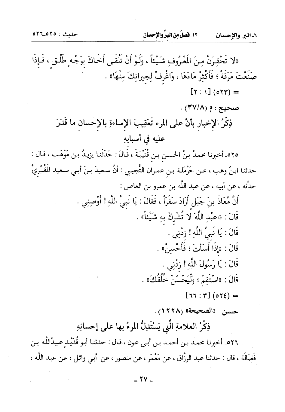 ذِكْرُ الْعَلَامَةِ الَّتِي يَسْتَدِلُّ الْمَرْءُ بِهَا عَلَى إحسانه