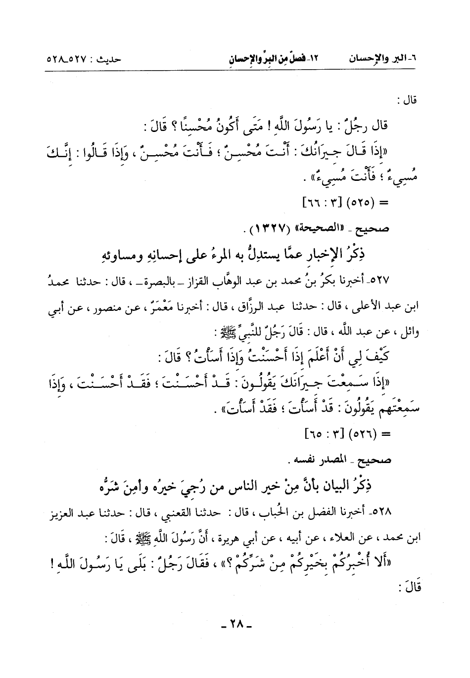 (أَلَا أُخْبِرُكُمْ بِخَيْرِكُمْ مِنْ شَرِّكُمْ؟ ) فقَالَ رَجُلٌ: بَلَى يَا رَسُولَ اللَّهِ قَالَ: -[29]-