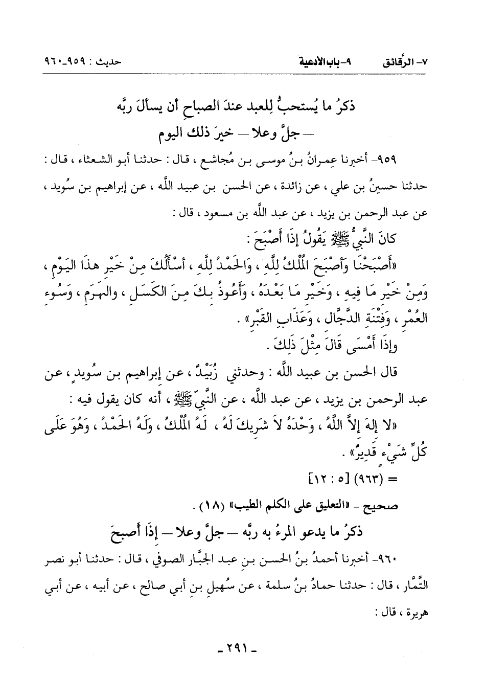 -[292]- كَانَ رَسُولُ اللَّهِ صَلَّى اللَّهُ عَلَيْهِ وَسَلَّمَ يَقُولُ إِذَا أَصْبَحَ:
