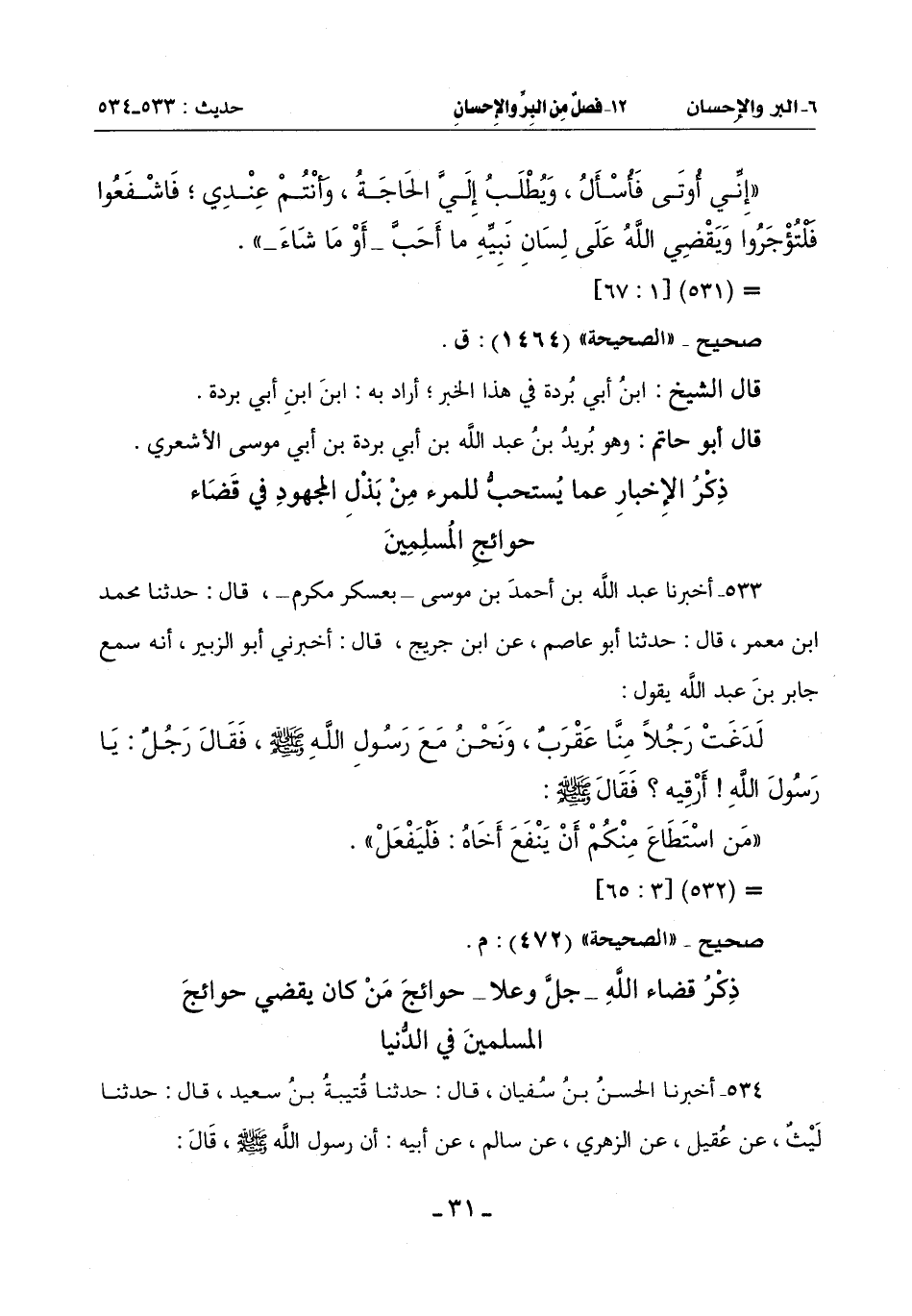 ذِكْرُ الْإِخْبَارِ عَمَّا يُسْتَحَبُّ لِلْمَرْءِ مِنْ بَذْلِ الْمَجْهُودِ فِي قَضَاءِ حَوَائِجِ الْمُسْلِمِينَ