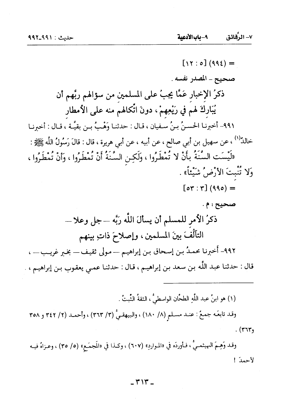 991 - أَخْبَرَنَا الْحَسَنُ بْنُ سُفْيَانَ قَالَ: حَدَّثَنَا وَهْبُ بْنُ بَقِيَّةَ قَالَ: أَخْبَرَنَا خَالِدٌ (¬1) عَنْ سُهَيْلِ بْنِ أَبِي صَالِحٍ عَنْ أَبِيهِ عَنْ أَبِي هُرَيْرَةَ قَالَ: قَالَ رَسُولُ اللَّهِ صَلَّى اللَّهُ عَلَيْهِ وَسَلَّمَ: