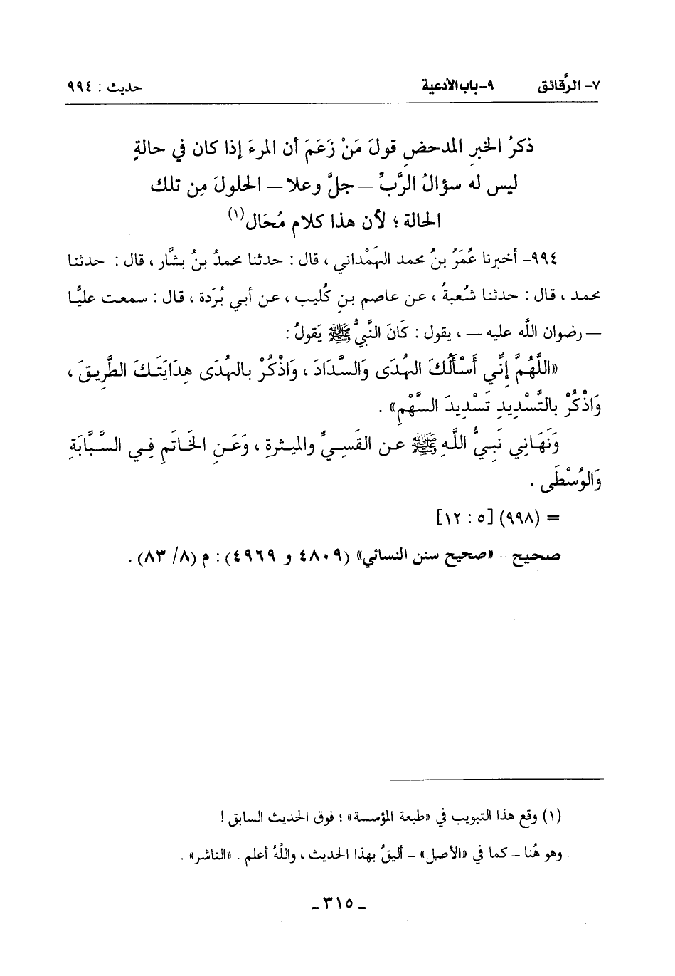 (¬1) وقع هذا التبويب في ((طبعة المؤسسة))؛ فوق الحديث السابق!