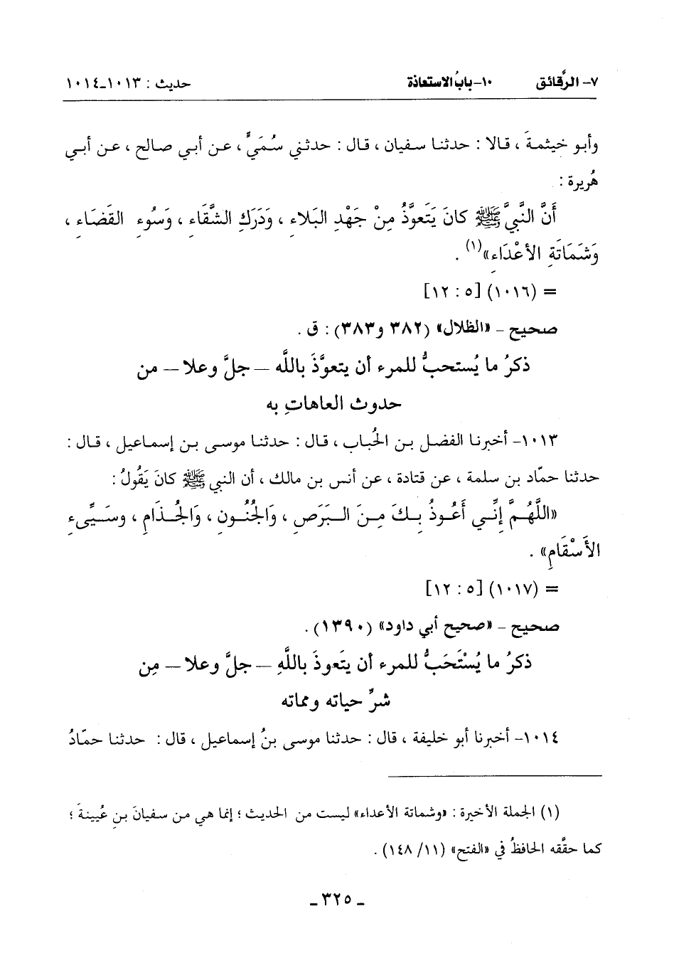 (اللَّهُمَّ إِنِّي أَعُوذُ بِكَ مِنَ الْبَرَصِ وَالْجُنُونِ والجذام وسَيِّىءِ الأسقام)