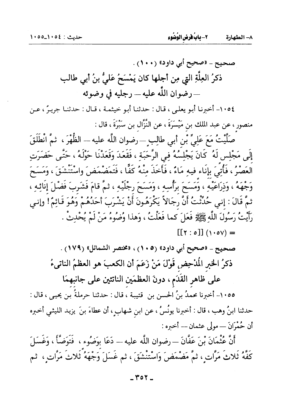 ذِكْرُ الْعِلَّةِ الَّتِي مِنْ أَجْلِهَا كَانَ يَمْسَحُ عَلِيِّ بْنِ أَبِي طَالِبٍ - رِضْوَانُ اللَّهِ عَلَيْهِ - رِجْلَيْهِ فِي وَضُوئِهِ