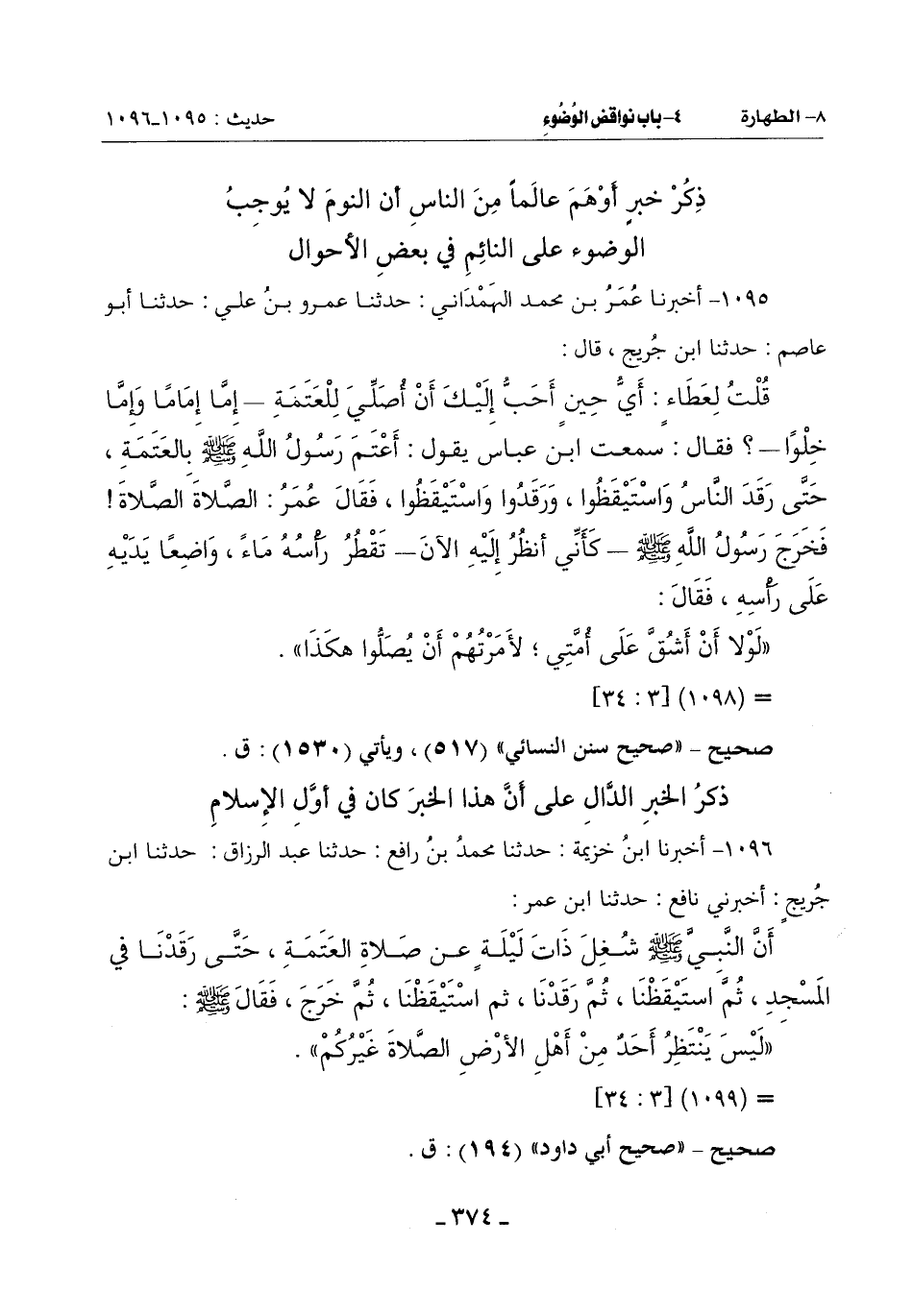 1096 - أَخْبَرَنَا ابْنُ خُزَيْمَةَ حَدَّثَنَا مُحَمَّدُ بْنُ رَافِعٍ حَدَّثَنَا عَبْدُ الرَّزَّاقِ حَدَّثَنَا ابْنُ جُرَيْجٍ أَخْبَرَنِي نَافِعٌ