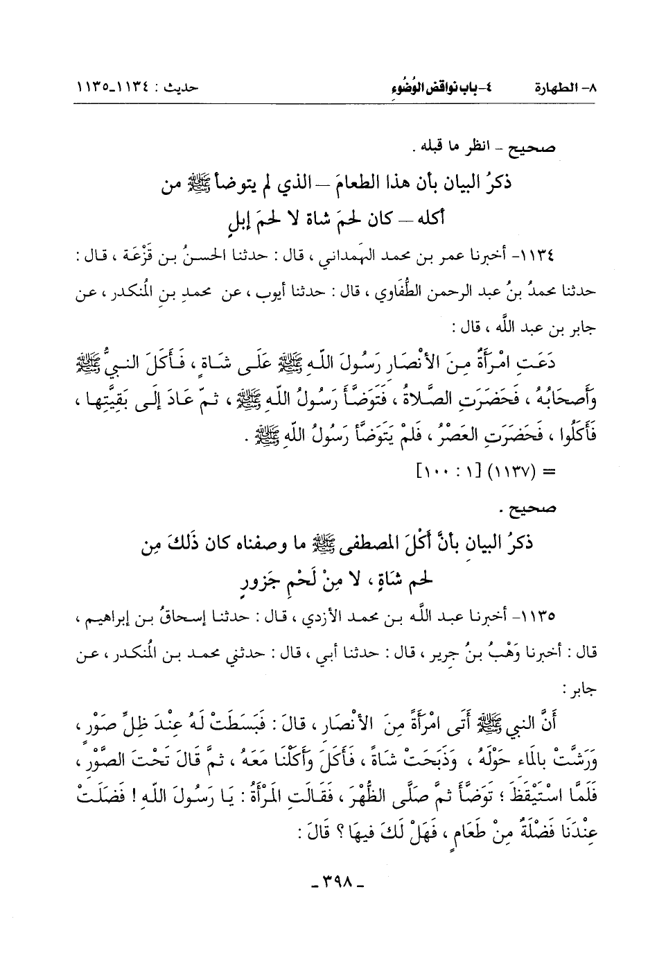 1134 - أَخْبَرَنَا عُمَرُ بْنُ مُحَمَّدٍ الْهَمْدَانِيُّ قَالَ: حَدَّثَنَا الْحَسَنُ بْنُ قَزَعَةَ قَالَ: حَدَّثَنَا مُحَمَّدُ بْنُ عَبْدِ الرَّحْمَنِ الطُّفَاوِيُّ قَالَ: حَدَّثَنَا أَيُّوبُ عَنْ مُحَمَّدِ بْنِ الْمُنْكَدِرِ عَنْ جَابِرِ بْنِ عبد اللَّهِ قَالَ: