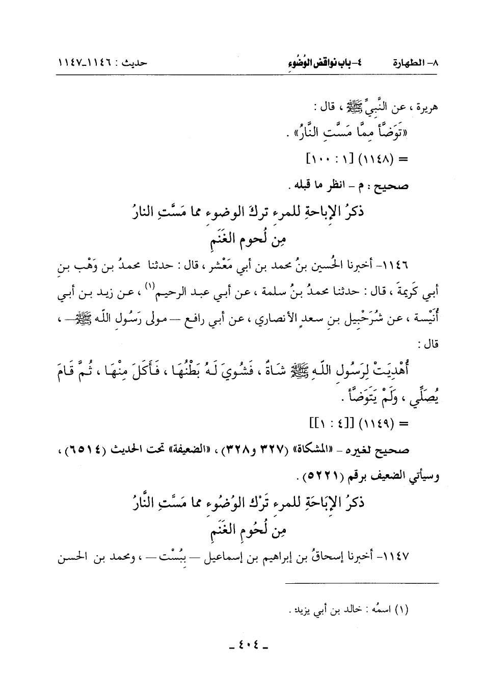 ذِكْرُ الْإِبَاحَةِ لِلْمَرْءِ تَرْكُ الْوُضُوءِ مِمَّا مَسَّتِ النَّارُ مِنْ لُحُومِ الْغَنَمِ