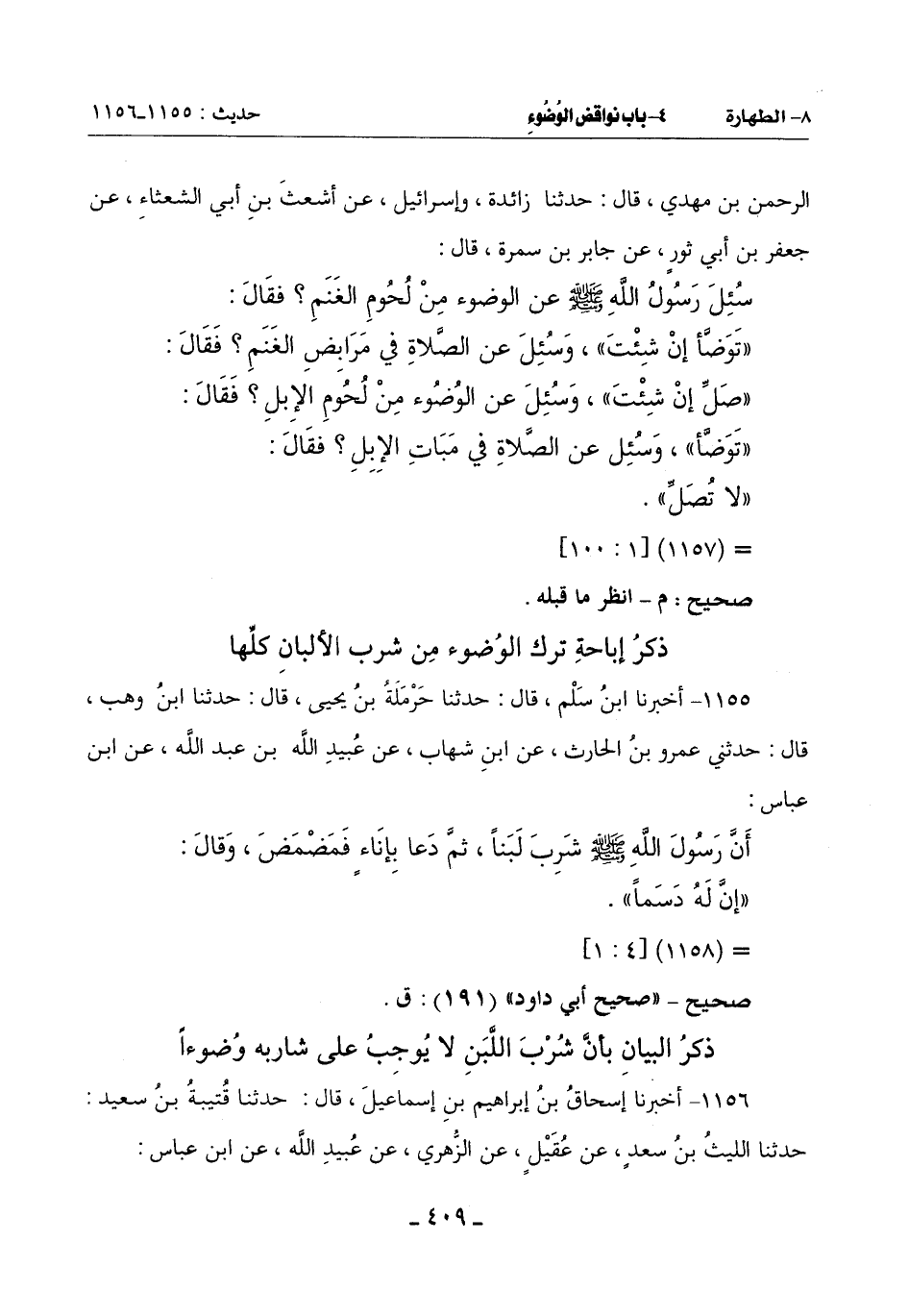 -[410]- أَنَّ النَّبِيَّ صَلَّى اللَّهُ عَلَيْهِ وَسَلَّمَ شَرِبَ لَبَنًا فَدَعَا بِمَاءٍ فتضمض وقال: