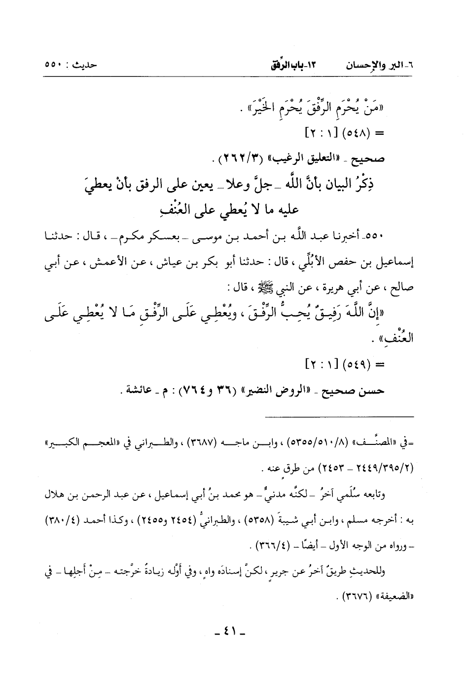 (إِنَّ اللَّهَ رَفِيقٌ يُحِبُّ الرفق ويعطي على الرفق مالا يعطي على العنف)