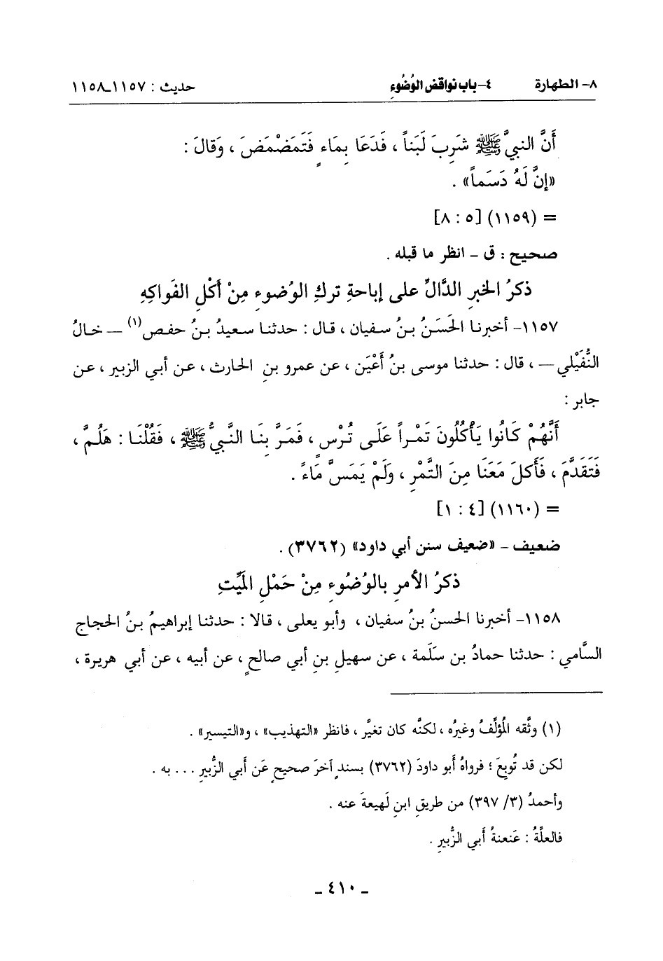 1158 - أَخْبَرَنَا الْحَسَنُ بْنُ سُفْيَانَ وَأَبُو يَعْلَى قَالَا: حَدَّثَنَا إِبْرَاهِيمُ بْنُ الْحَجَّاجِ السَّامِيُّ حَدَّثَنَا حَمَّادُ بْنُ سَلَمَةَ عَنْ سُهَيْلِ بْنِ أَبِي صَالِحٍ عَنْ أَبِيهِ عَنْ أَبِي هُرَيْرَةَ -[411]- عَنِ النَّبِيِّ صَلَّى اللَّهُ عَلَيْهِ وَسَلَّمَ قَالَ: