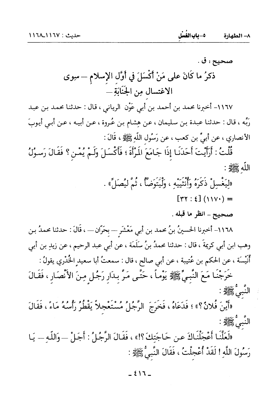 -[417]- (إِذَا عَجِلَ أَحَدُكُمْ أَوْ أُقْحِطَ فَلَا غُسْلَ عَلَيْهِ إِنَّمَا عَلَيْهِ أن يتوضأ)