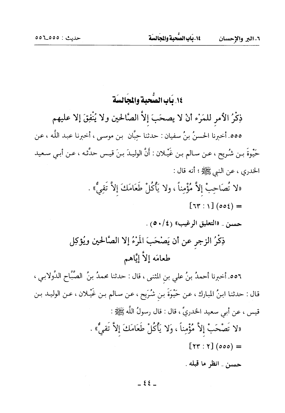 14 ـ بَابُ الصُّحْبَةِ وَالْمُجَالَسَةِ