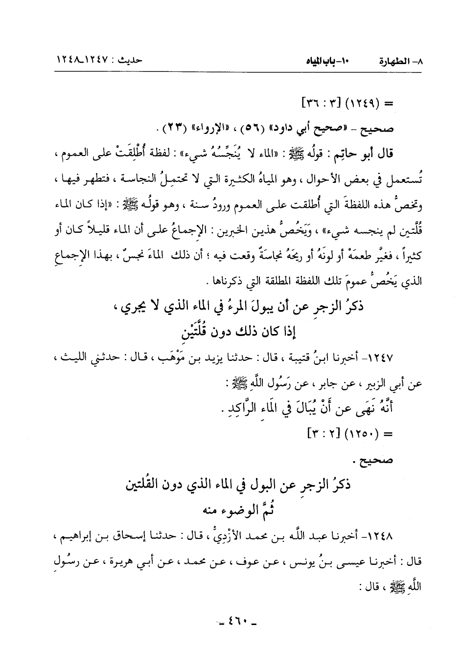 1247 - أَخْبَرَنَا ابْنُ قُتَيْبَةَ قَالَ: حَدَّثَنَا يَزِيدُ بْنُ مَوْهَبٍ قَالَ: حَدَّثَنِي اللَّيْثُ عَنْ أَبِي الزُّبَيْرِ عَنْ جَابِرٍ: عَنْ رَسُولِ اللَّهِ صَلَّى اللَّهُ عَلَيْهِ وَسَلَّمَ