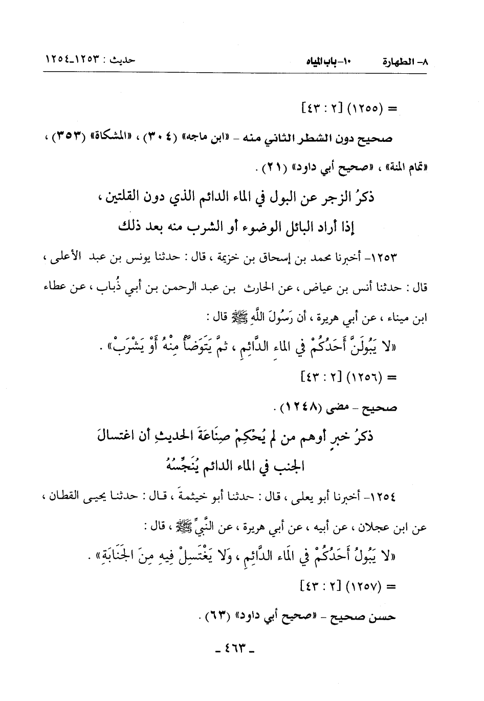 (لَا يَبُولُ أَحَدُكُمْ فِي الْمَاءِ الدَّائِمِ وَلَا يَغْتَسِلُ فِيهِ من الجنابة)