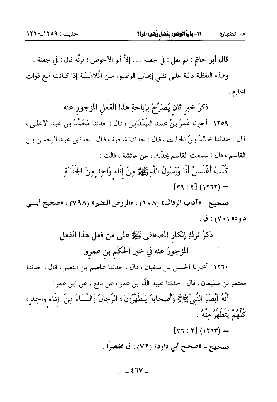1260 - أَخْبَرَنَا الْحَسَنُ بْنُ سُفْيَانَ قَالَ: حَدَّثَنَا عَاصِمُ بْنُ النَّضْرِ قَالَ: حَدَّثَنَا مُعْتَمِرُ بْنُ سُلَيْمَانَ قَالَ: حَدَّثَنَا عُبَيْدُ اللَّهِ بْنُ عُمَرَ عَنْ نَافِعٍ: عَنِ ابْنِ عُمَرَ