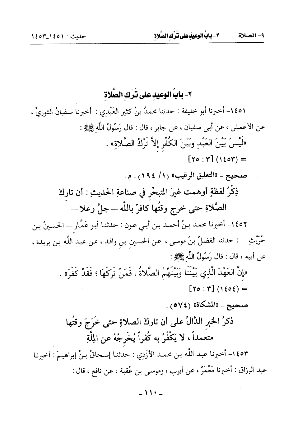 2 - بَابُ الْوَعِيدِ عَلَى تَرْكِ الصَّلَاةِ