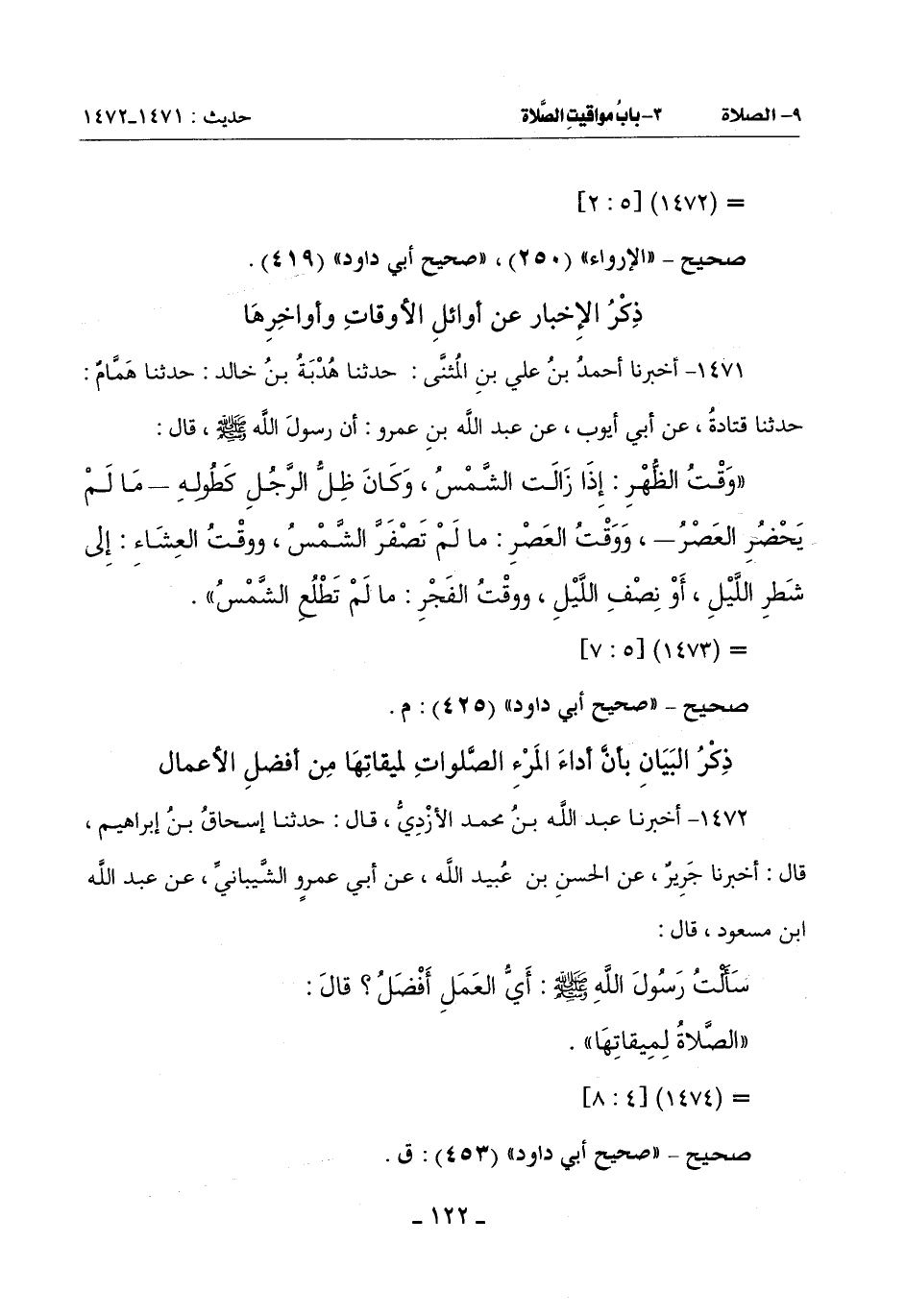 1472 - أَخْبَرَنَا عَبْدُ اللَّهِ بْنُ مُحَمَّدٍ الْأَزْدِيُّ قَالَ: حَدَّثَنَا إِسْحَاقُ بْنُ إِبْرَاهِيمَ قَالَ: أَخْبَرَنَا جَرِيرٌ عَنِ الْحَسَنِ بْنِ عُبَيْدِ اللَّهِ عَنْ أَبِي عَمْرٍو الشَّيْبَانِيِّ: عَنْ عَبْدِ اللَّهِ بْنِ مَسْعُودٍ قَالَ: