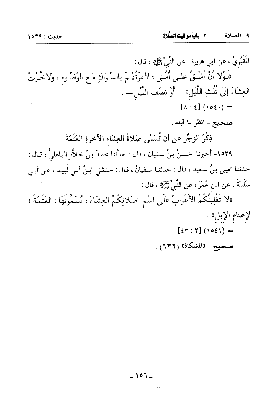 (لَا تَغْلِبَنَّكُمُ الْأَعْرَابُ عَلَى اسْمِ صَلَاتِكُمُ العشاء يسمونها العتمة لإعتام الإبل)