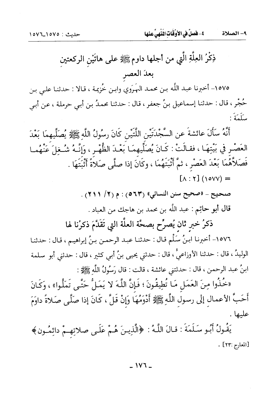 يَقُولُ أَبُو سَلَمَةَ: قَالَ اللَّهُ: {الَّذِينَ هُمْ عَلَى صلاتهم دائمون} [المعارج: 23]-[177]-