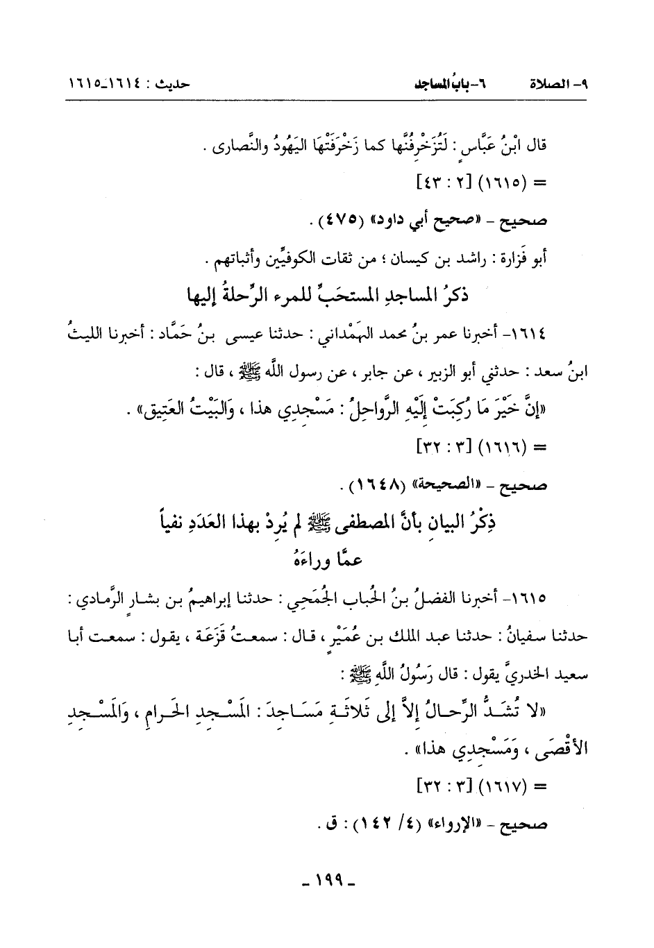 (لَا تُشَدُّ الرِّحَالُ إِلَّا إِلَى ثَلَاثَةِ مَسَاجِدَ: الْمَسْجِدُ الْحَرَامُ والمسجد الأقصى ومسجدي هذا)