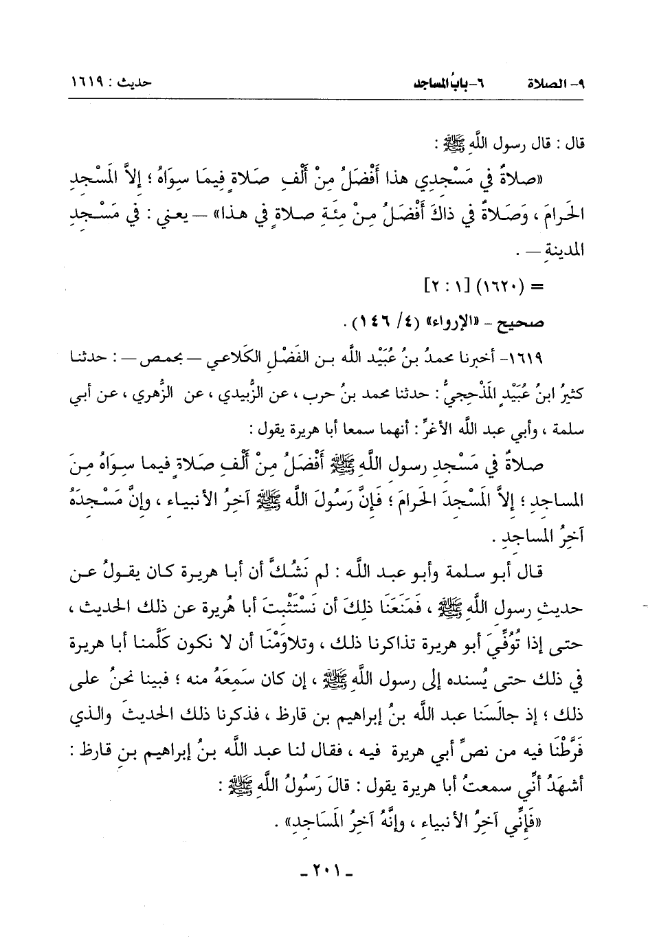 (فَإِنِّي آخِرُ الْأَنْبِيَاءِ وَإِنَّهُ آخِرُ المساجد) -[202]-