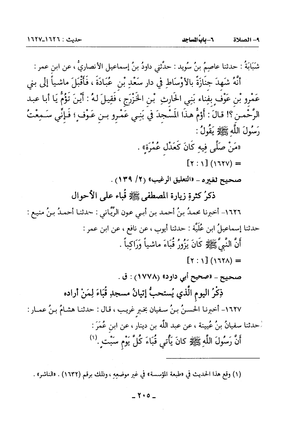 أَنَّ رَسُولَ اللَّهِ صَلَّى اللَّهُ عَلَيْهِ وَسَلَّمَ كَانَ يَأْتِي قُباء كُلَّ يَوْمِ سبت (¬1). -[206]-