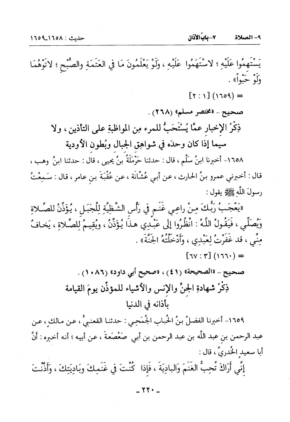 1659 - أَخْبَرَنَا الْفَضْلُ بْنُ الْحُبَابِ الْجُمَحِيُّ حَدَّثَنَا الْقَعْنَبِيُّ عَنْ مَالِكٍ عَنْ عَبْدِ الرَّحْمَنِ بْنِ عَبْدِ اللَّهِ بْنِ عَبْدِ الرَّحْمَنِ بْنِ أَبِي صَعْصَعَةَ عَنْ أَبِيهِ أَنَّهُ أَخْبَرَهُ: أَنَّ أَبَا سَعِيدٍ الْخُدْرِيَّ قَالَ: