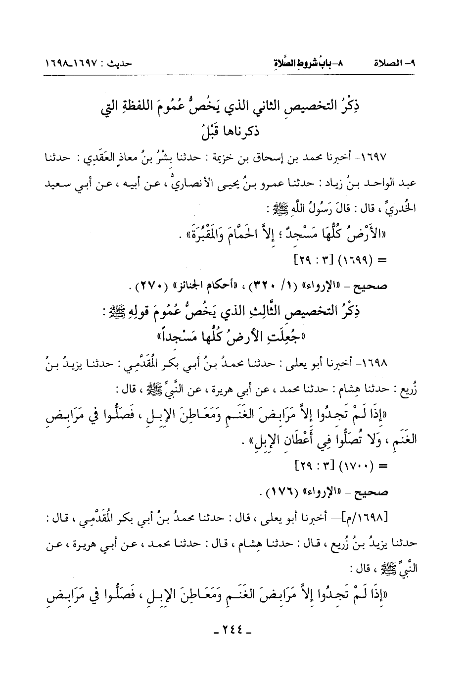 (إِذَا لَمْ تَجِدُوا إِلَّا مَرَابِضَ -[245]- الْغَنَمِ وَمَعَاطِنَ الْإِبِلِ فصلُّوا فِي مَرَابِضِ الغنم ولا تصلوا في أعطان الإبل) (¬1)