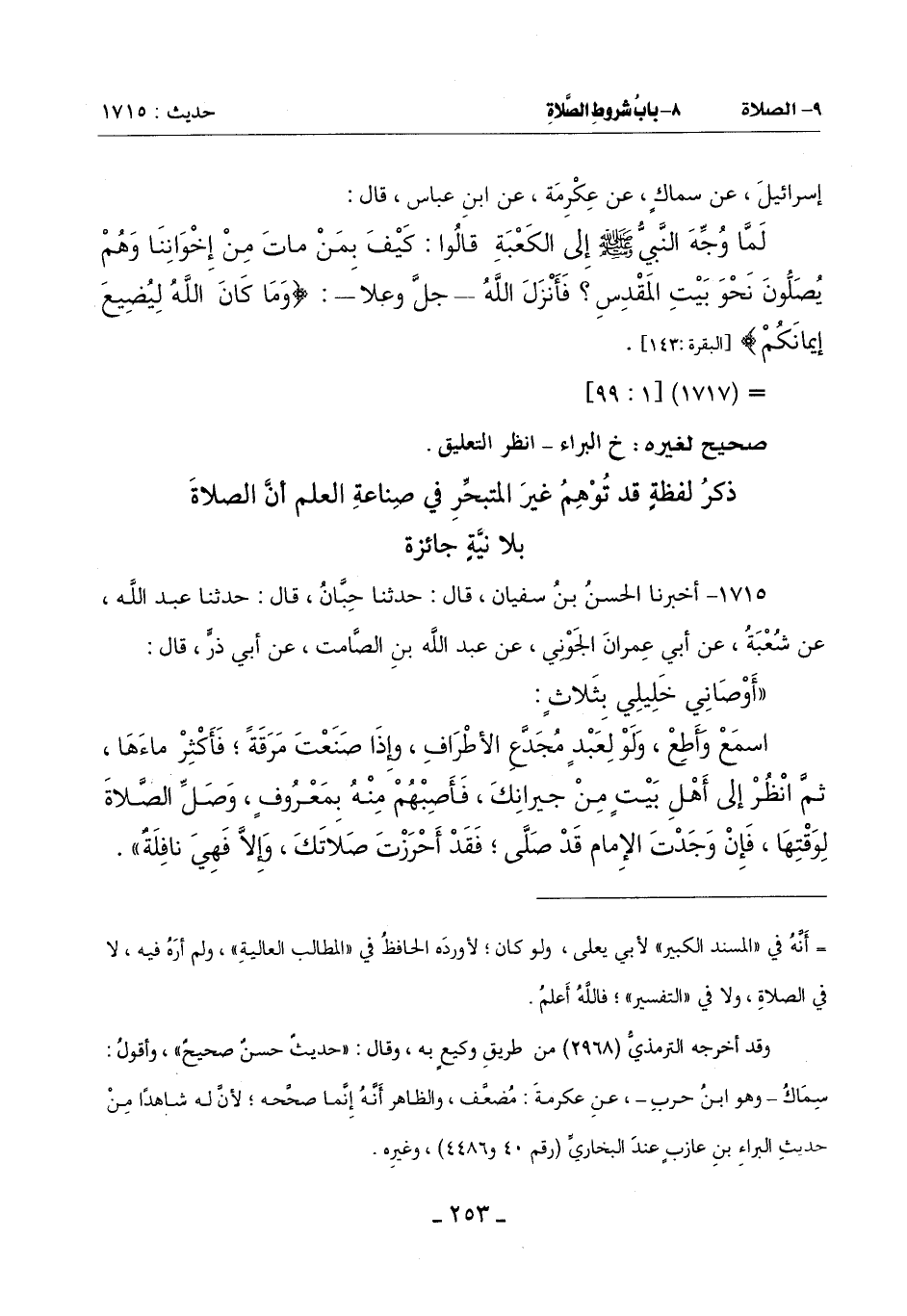 1715 - أَخْبَرَنَا الْحَسَنُ بْنُ سُفْيَانَ قَالَ: حَدَّثَنَا حِبَّانُ قَالَ: حَدَّثَنَا عَبْدُ اللَّهِ عَنْ شُعْبَةَ عَنْ أَبِي عِمْرَانَ الْجَوْنِيِّ عَنْ عَبْدِ اللَّهِ بْنِ الصَّامِتِ عَنْ أَبِي ذَرٍّ قَالَ: