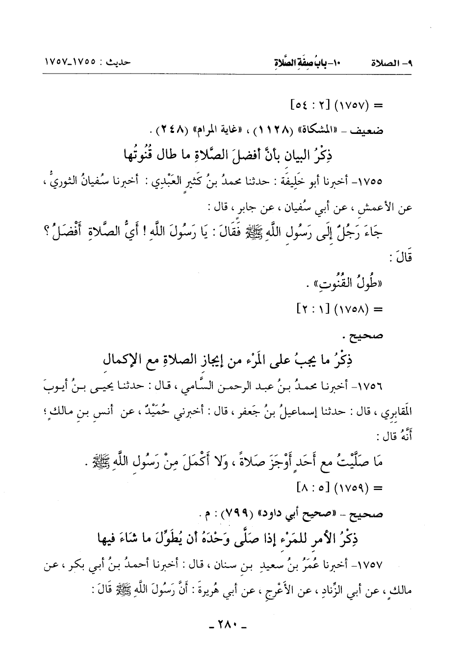 ذِكْرُ الْبَيَانِ بِأَنَّ أَفْضَلَ الصَّلَاةِ مَا طَالَ قنوتها