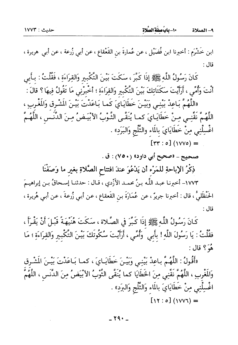 1773 - أَخْبَرَنَا عَبْدُ اللَّهِ بْنُ مُحَمَّدٍ الْأَزْدِيُّ قَالَ: حَدَّثَنَا إِسْحَاقُ بْنُ إِبْرَاهِيمَ الْحَنْظَلِيُّ قَالَ: أَخْبَرَنَا جَرِيرٌ عَنْ عُمَارَةَ بْنِ الْقَعْقَاعِ عَنْ أَبِي زُرْعَةَ عَنْ أَبِي هُرَيْرَةَ: قَالَ: