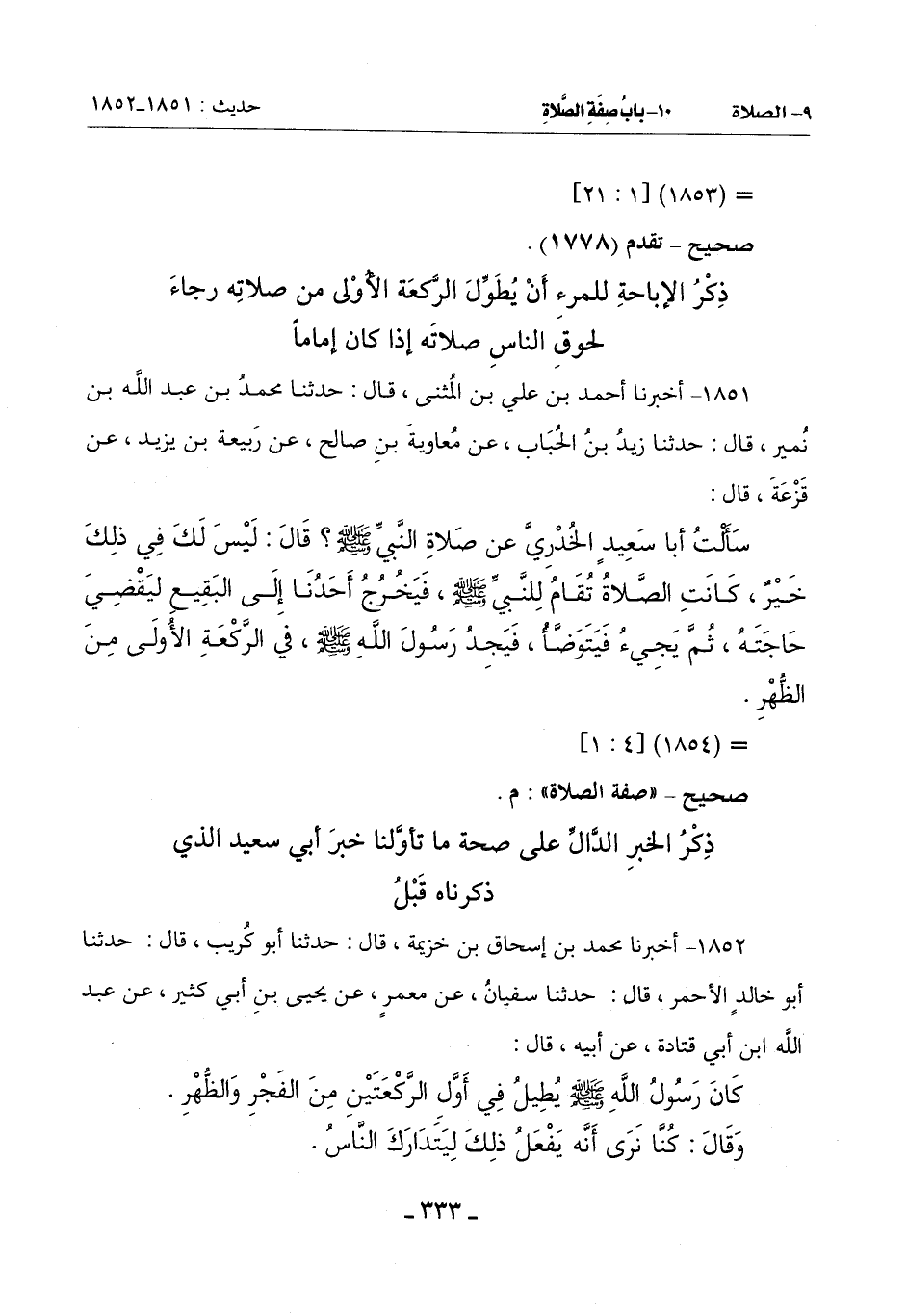 1851 - أَخْبَرَنَا أَحْمَدُ بْنُ عَلِيِّ بْنِ الْمُثَنَّى قَالَ: حَدَّثَنَا مُحَمَّدُ بْنُ عَبْدِ اللَّهِ بْنِ نُمَيْرٍ قَالَ: حَدَّثَنَا زَيْدُ بْنُ الْحُبَابِ عَنْ مُعَاوِيَةَ بْنُ صَالِحٍ عَنْ رَبِيعَةَ بْنِ يَزِيدَ عن قَزَعَةَ قَالَ: