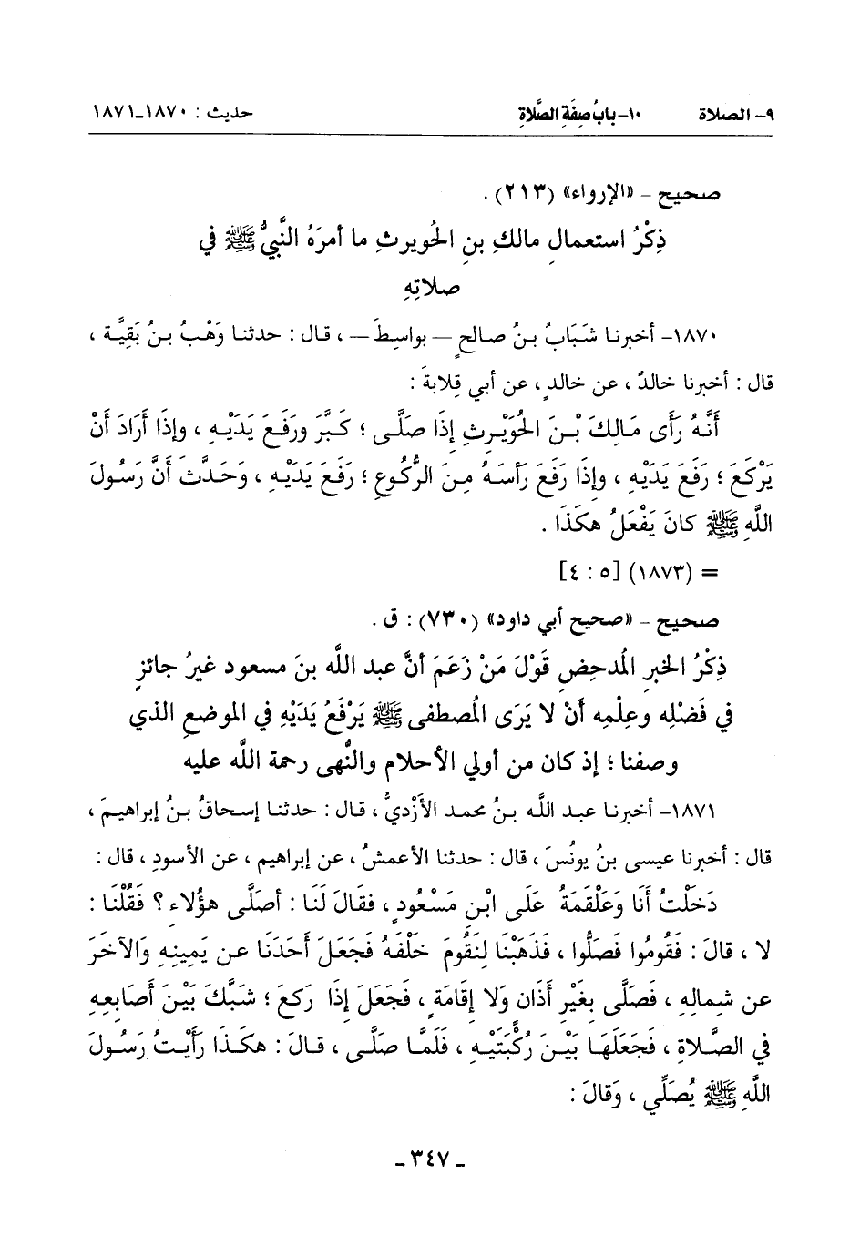 ذكر الخبر المدحض قول من زعم أن عَبْدَ اللَّهِ بْنَ مَسْعُودٍ غَيْرُ جَائِزٍ فِي فَضْلِهِ وَعِلْمِهِ أَنْ لَا يَرَى الْمُصْطَفَى صَلَّى اللَّهُ عَلَيْهِ وَسَلَّمَ يَرْفَعُ يَدَيْهِ فِي الْمَوْضِعِ الَّذِي وَصَفْنَا إِذْ كَانَ مِنْ أُولِي الْأَحْلَامِ وَالنُّهَى رَحْمَةُ اللَّهِ عَلَيْهِ