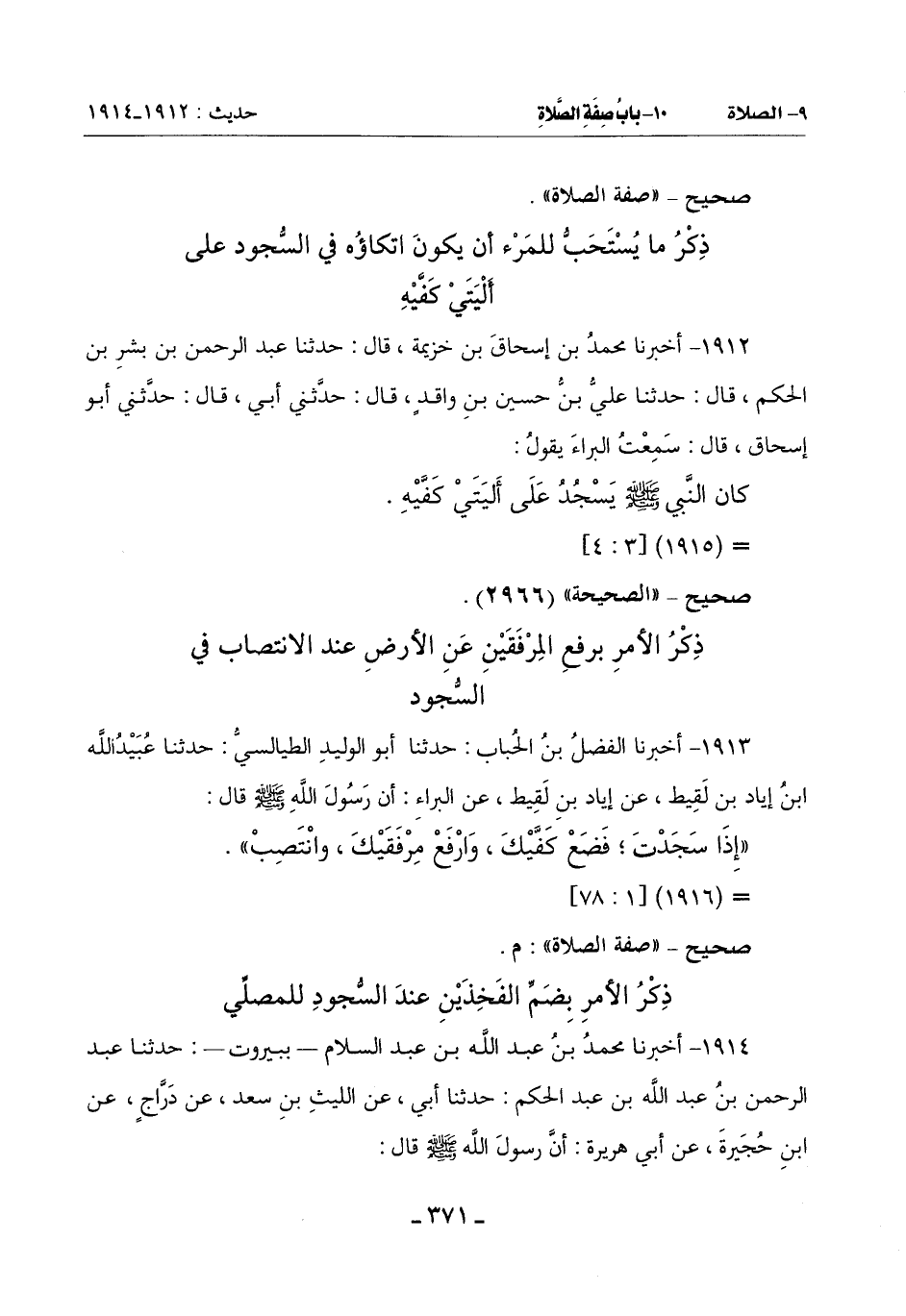كَانَ النَّبِيُّ صَلَّى اللَّهُ عَلَيْهِ وَسَلَّمَ يَسْجُدُ عَلَى أَلْيَتَيْ كَفَّيْهِ