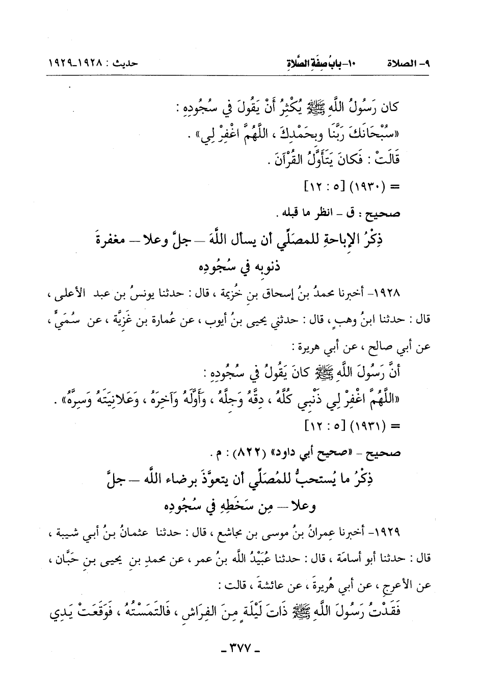 1929 - أَخْبَرَنَا عِمْرَانُ بْنُ مُوسَى بْنِ مُجَاشِعٍ قَالَ: حَدَّثَنَا عُثْمَانُ بْنُ أَبِي شَيْبَةَ قَالَ: حَدَّثَنَا أَبُو أُسَامَةَ قَالَ: حَدَّثَنَا عُبَيْدُ اللَّهِ بْنُ عمر عن مُحَمَّدِ بْنِ يَحْيَى بْنِ حِبَّانَ عَنِ الْأَعْرَجِ عَنْ أَبِي هُرَيْرَةَ عَنْ عَائِشَةَ قَالَتْ: