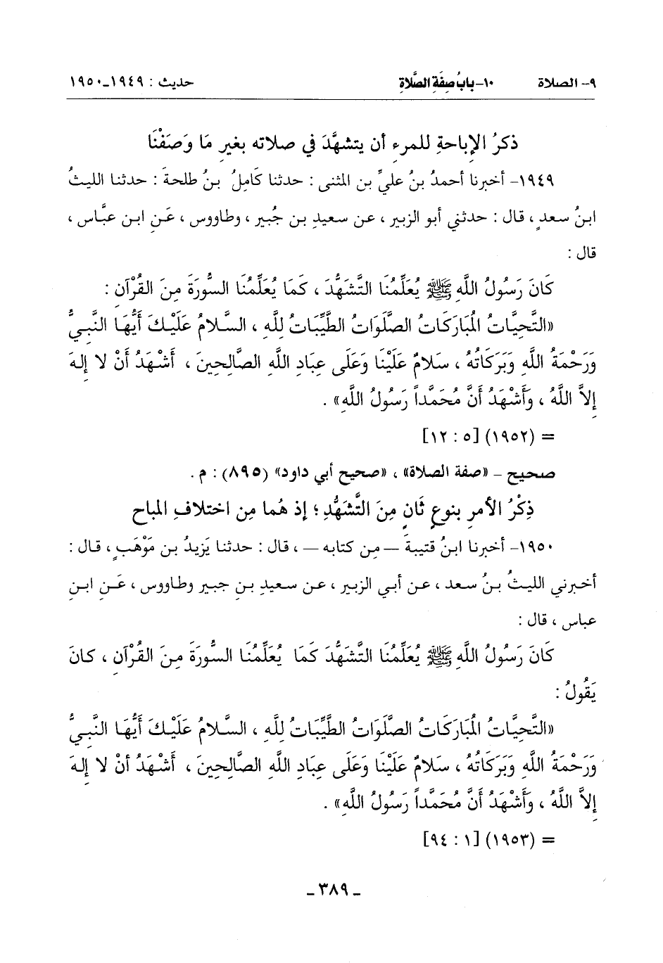 1949 - أَخْبَرَنَا أَحْمَدُ بْنُ عَلِيِّ بْنِ الْمُثَنَّى حَدَّثَنَا كَامِلُ بْنُ طَلْحَةَ حَدَّثَنَا اللَّيْثُ بْنُ سَعْدٍ قَالَ: حَدَّثَنِي أَبُو الزُّبَيْرِ عَنْ سَعِيدِ بْنِ جبير وطاووس عَنِ ابْنِ عَبَّاسٍ قَالَ: