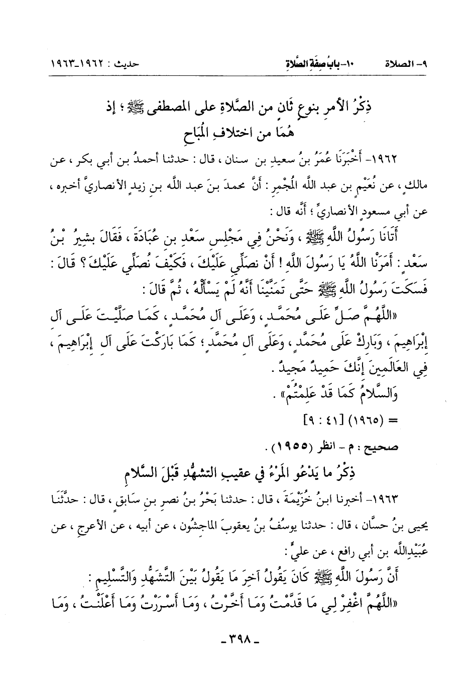 ذِكْرُ الْأَمْرِ بِنَوْعٍ ثَانٍ مِنَ الصَّلَاةِ عَلَى الْمُصْطَفَى صَلَّى اللَّهُ عَلَيْهِ وَسَلَّمَ إِذْ هُمَا مِنَ اخْتِلَافِ الْمُبَاحِ