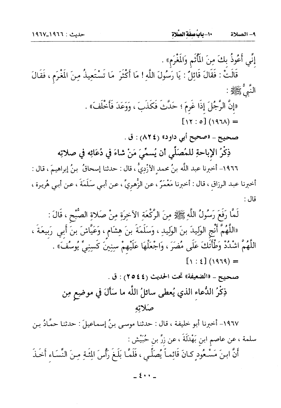1967 - أَخْبَرَنَا أَبُو خَلِيفَةَ قَالَ: حَدَّثَنَا مُوسَى بْنُ إِسْمَاعِيلَ حَدَّثَنَا حَمَّادُ بْنُ سَلَمَةَ عَنْ عَاصِمِ بْنِ بَهْدَلَةَ عَنْ زِرِّ بْنِ حُبَيْشٍ