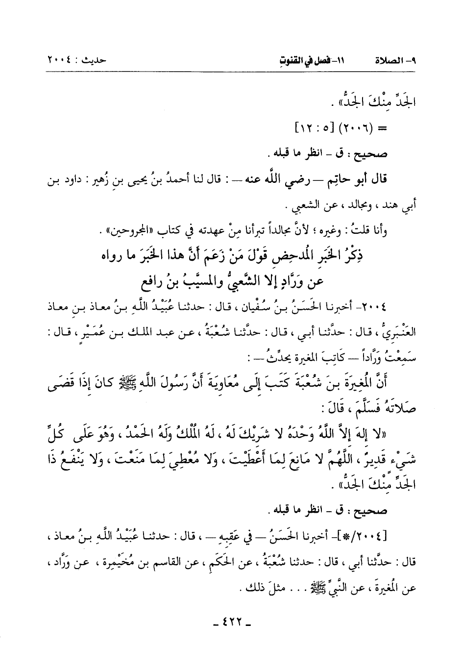 2004 - أَخْبَرَنَا الْحَسَنُ بْنُ سُفْيَانَ قَالَ: حَدَّثَنَا عُبَيْدُ اللَّهِ بْنُ مُعَاذِ بْنِ مُعَاذٍ الْعَنْبَرِيُّ قَالَ: حَدَّثَنَا أَبِي قَالَ: حَدَّثَنَا شُعْبَةُ عَنْ عَبْدِ الْمَلِكِ بْنِ عُمَيْرٍ قَالَ: سَمِعْتُ وَرَّاداً ـ كَاتِبَ الْمُغِيرَةِ يُحَدِّثُ ـ: