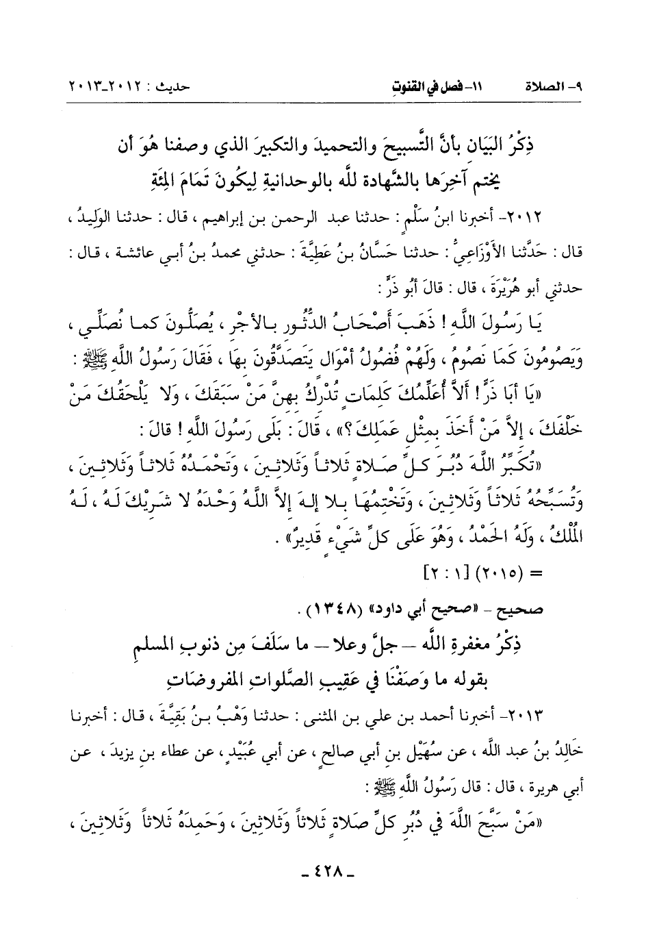 ذِكْرُ الْبَيَانِ بِأَنَّ التَّسْبِيحَ وَالتَّحْمِيدَ وَالتَّكْبِيرَ الَّذِي وَصَفْنَا هُوَ أَنْ يَخْتِمَ آخِرَهَا بِالشَّهَادَةِ لِلَّهِ بالوحدانية ليكون تمام المئة