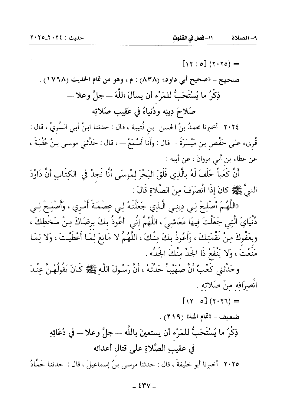 ذِكْرُ مَا يُسْتَحَبُّ لِلْمَرْءِ أَنْ يَسْأَلَ اللَّهَ جَلَّ وَعَلَا صَلَاحَ دِينِهِ وَدُنْيَاهُ فِي عُقَيْبِ صلاته