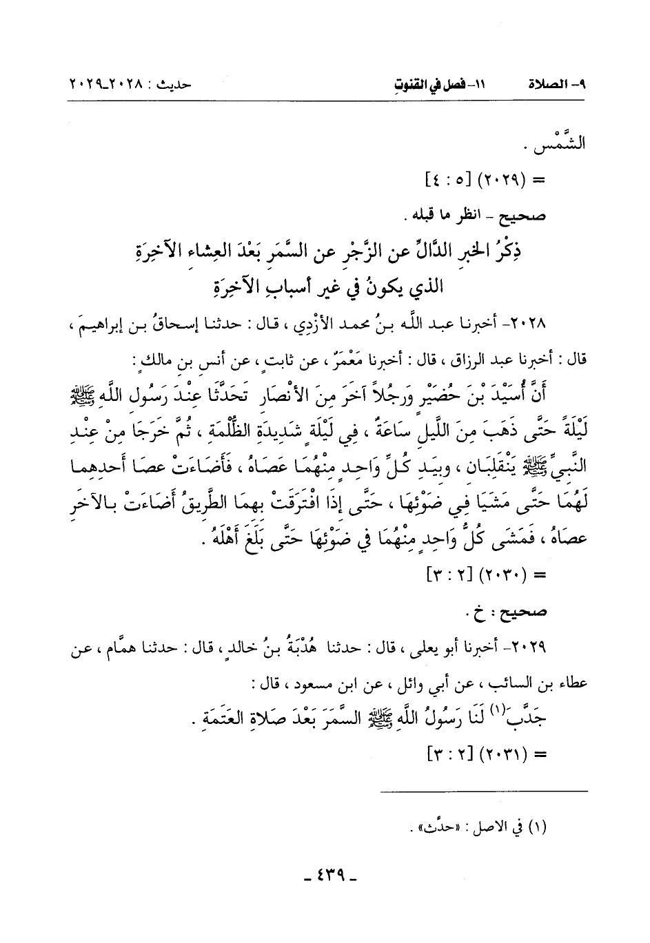 ذِكْرُ الْخَبَرِ الدَّالِّ عَنِ الزَّجْرِ عَنِ السَّمَرِ بَعْدَ الْعِشَاءِ الْآخِرَةِ الَّذِي يَكُونُ فِي غَيْرِ أسباب الآخرة