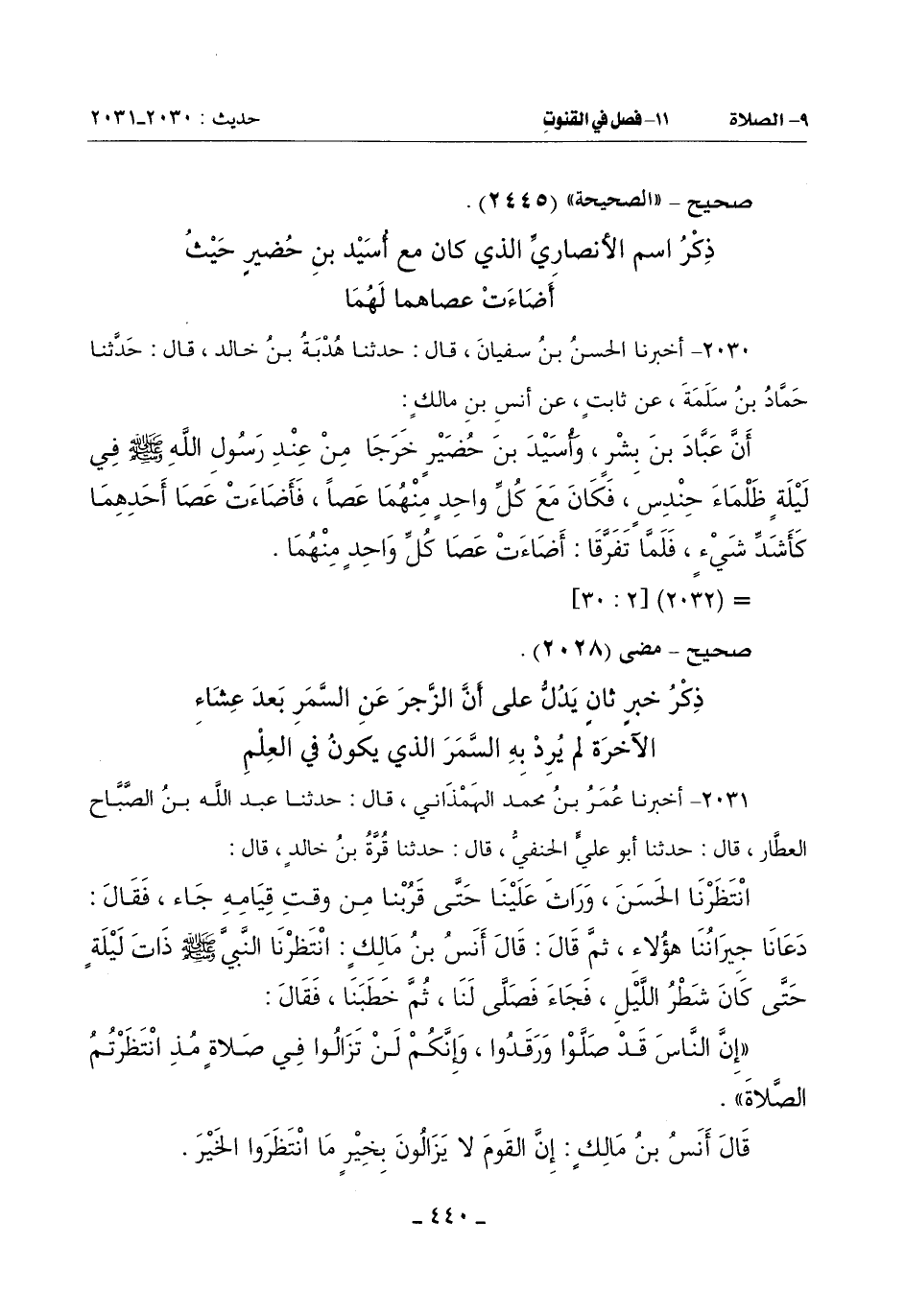2030 - أَخْبَرَنَا الْحَسَنُ بْنُ سُفْيَانَ قَالَ: حَدَّثَنَا هُدْبَةُ بْنُ خَالِدٍ قَالَ: حَدَّثَنَا حَمَّادُ بْنُ سَلَمَةَ عَنْ ثَابِتٍ عَنْ أَنَسِ بْنِ مَالِكٍ: