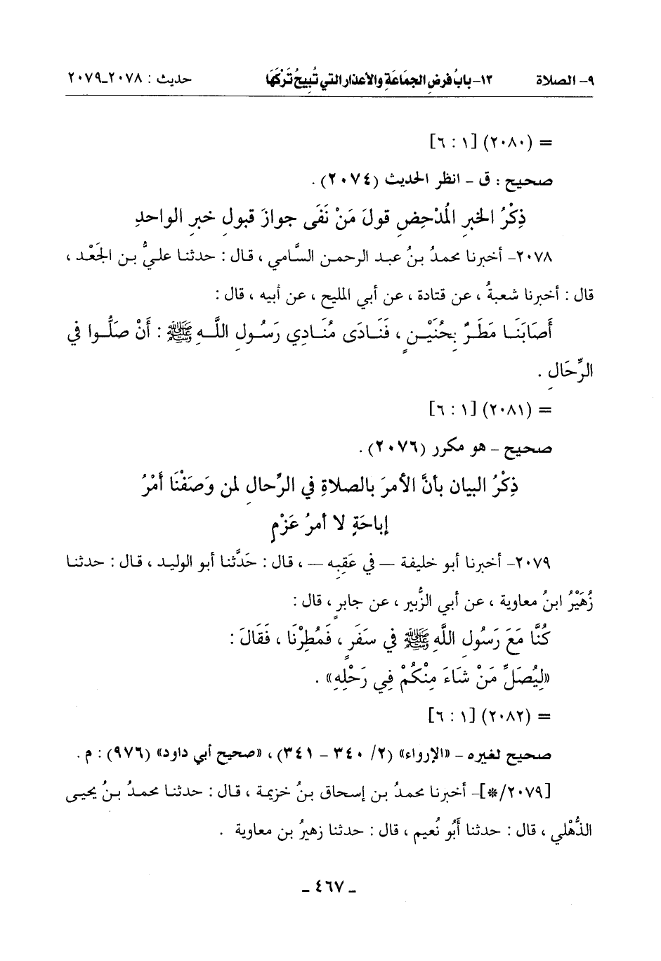 2079 - أَخْبَرَنَا أَبُو خَلِيفَةَ فِي عَقِبِهِ قَالَ: حَدَّثَنَا أَبُو الْوَلِيدِ قَالَ: حَدَّثَنَا زُهَيْرُ بْنُ مُعَاوِيَةَ عَنْ أَبِي الزُّبَيْرِ عَنْ جَابِرٍ قَالَ: