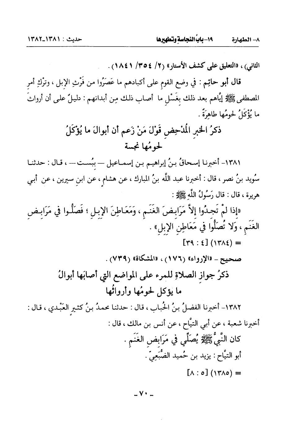 (إِذَا لَمْ تَجِدُوا إِلَّا مَرَابِضَ الْغَنَمِ وَمَعَاطِنَ الْإِبِلِ فَصَلُّوا فِي مَرَابِضِ الْغَنَمِ وَلَا تُصَلُّوا في معاطن الإبل)